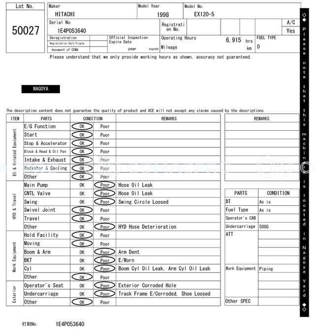Crawler Excavator HITACHI EX120-5 – 1998