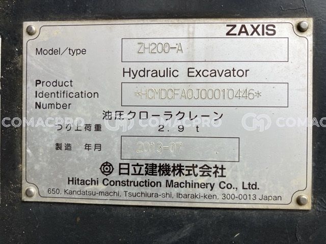 Crawler Excavator HITACHI ZH200-A – 2013