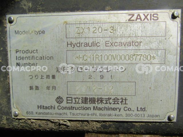Crawler Excavator HITACHI ZX120-3 – 2012