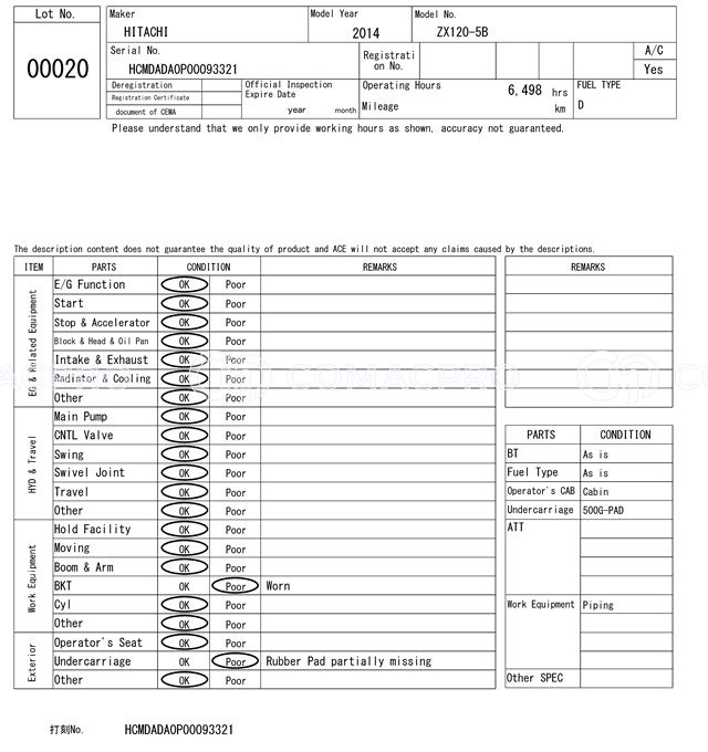 Crawler Excavator HITACHI ZX120-5B – 2014
