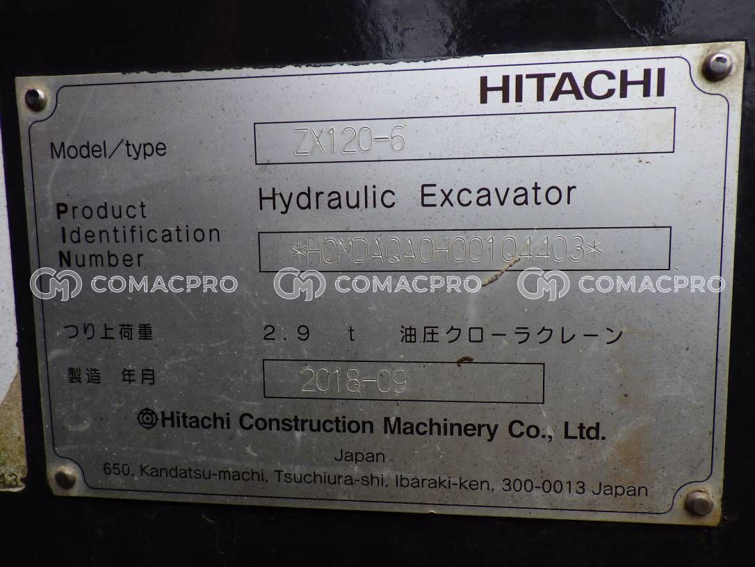 Crawler Excavator HITACHI ZX120-6 – 2018