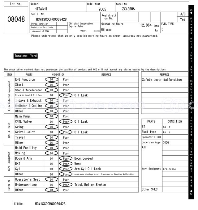 Crawler Excavator HITACHI ZX135US – 2005