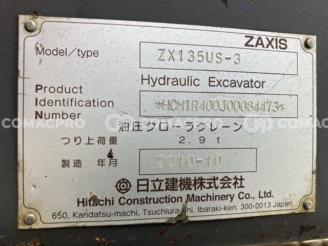 Crawler Excavator HITACHI ZX135US-3 – 2010
