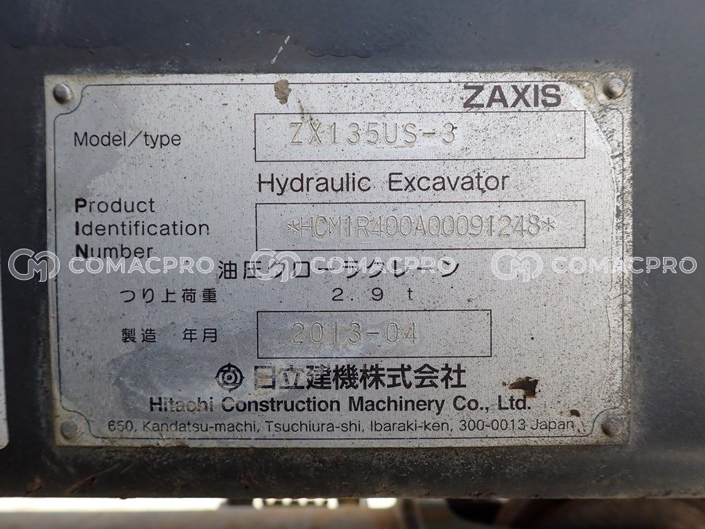 Crawler Excavator HITACHI ZX135US-3 – 2013