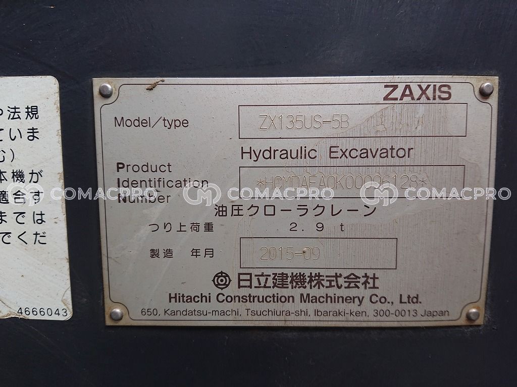 Crawler Excavator HITACHI ZX135US-5B – 2015