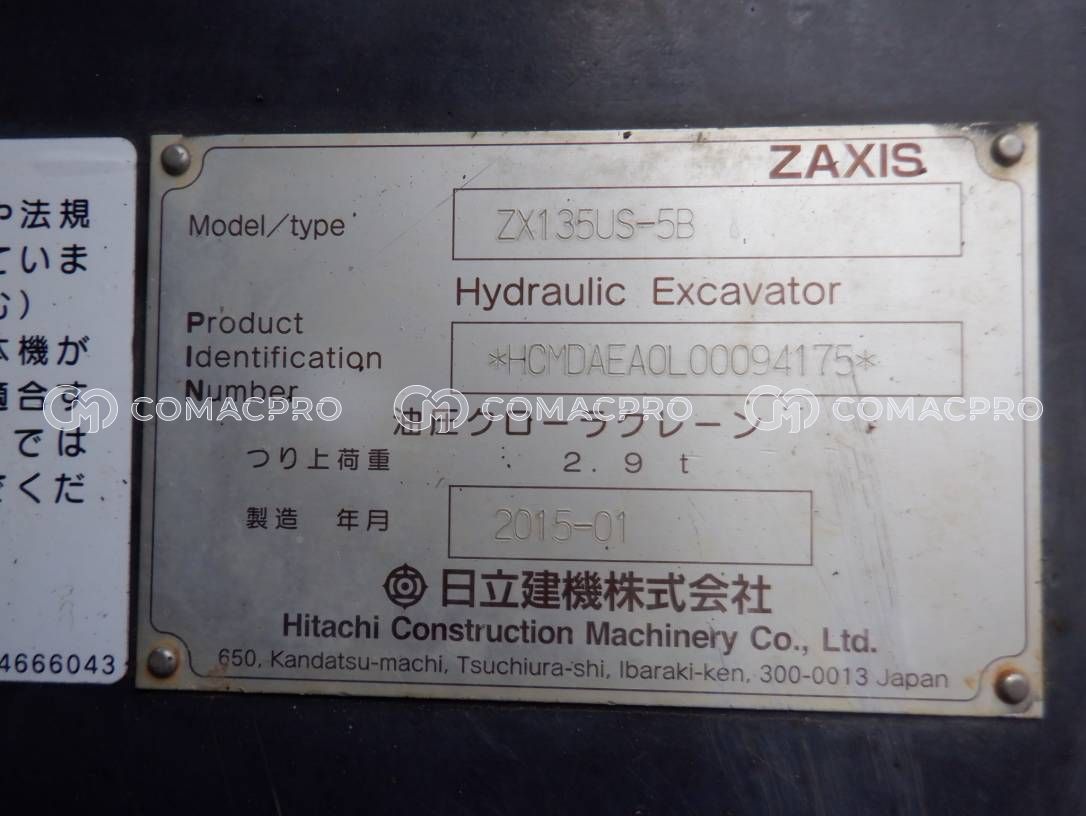 Crawler Excavator HITACHI ZX135US-5B – 2015
