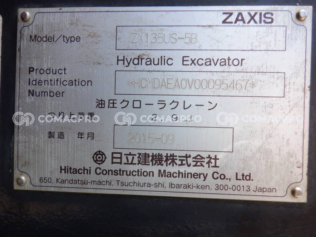 Crawler Excavator HITACHI ZX135US-5B – 2015
