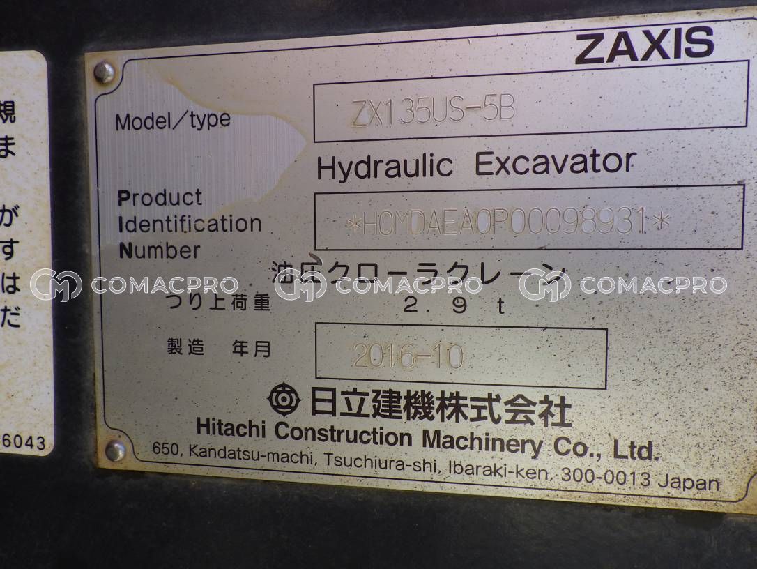 Crawler Excavator HITACHI ZX135US-5B – 2016