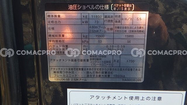 Crawler Excavator HITACHI ZX135USK-5B – 2015