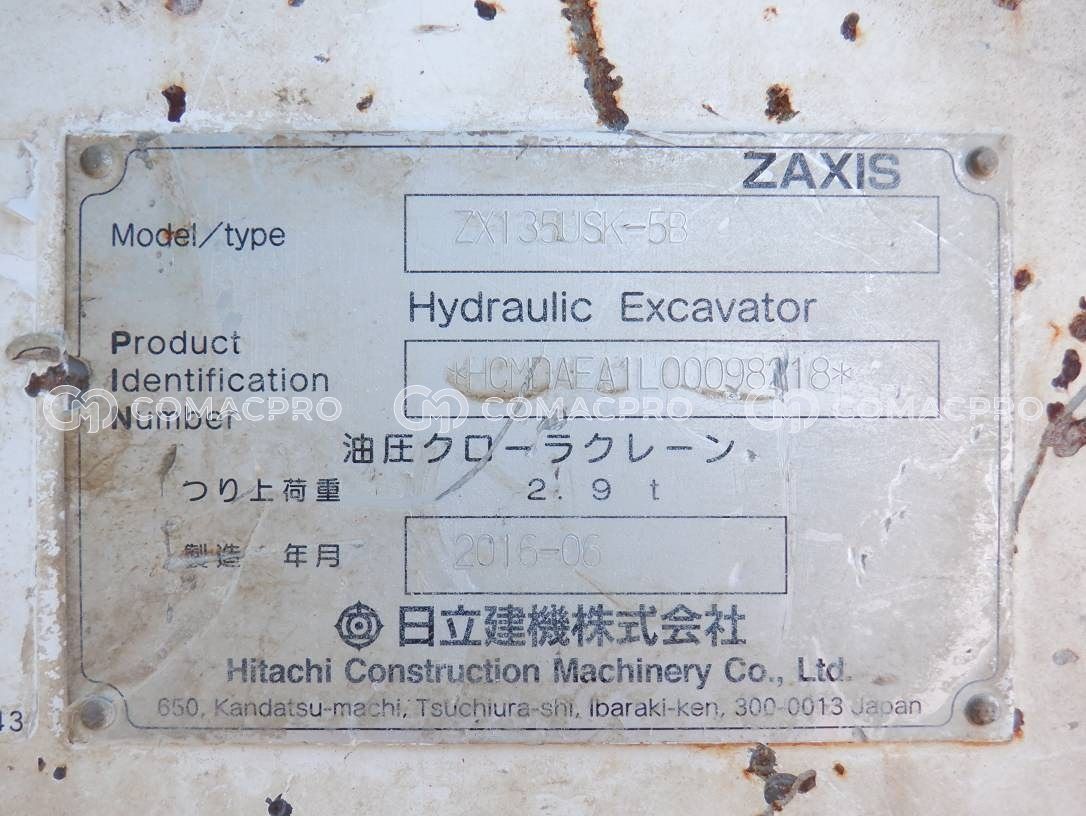 Crawler Excavator HITACHI ZX135USK-5B – 2016