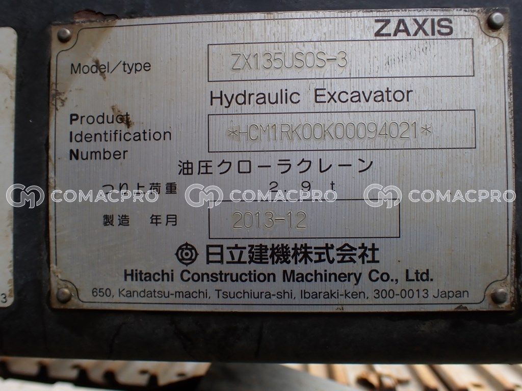 Crawler Excavator HITACHI ZX135USOS-3 – 2013