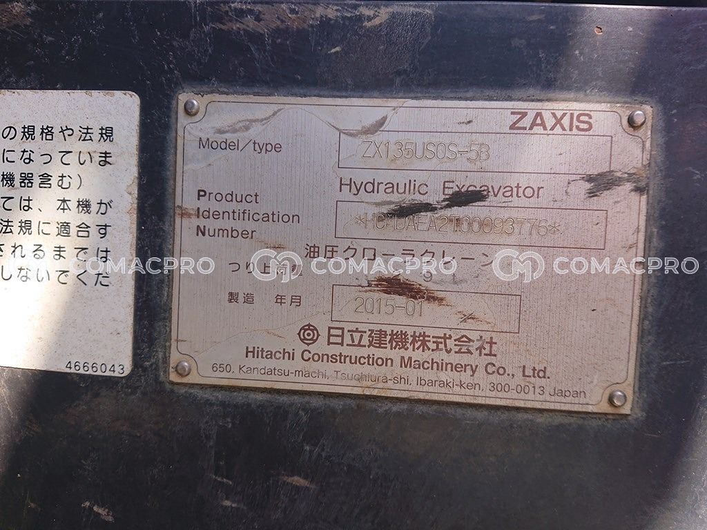 Crawler Excavator HITACHI ZX135USOS-5B – 2015
