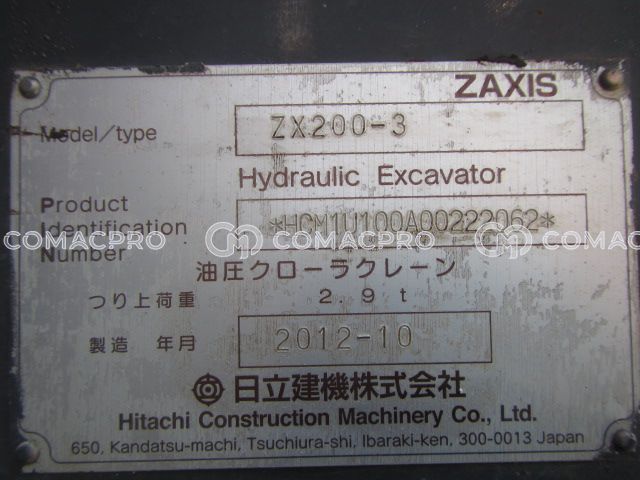 Crawler Excavator HITACHI ZX200-3 – 2012