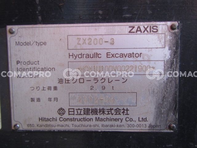 Crawler Excavator HITACHI ZX200-3 – 2012