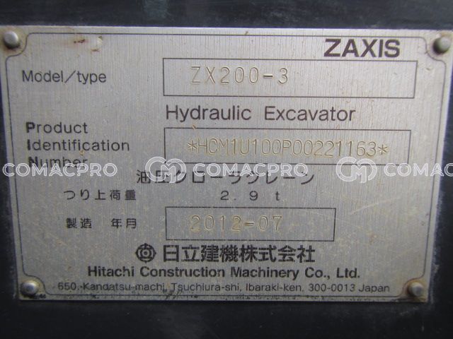 Crawler Excavator HITACHI ZX200-3 – 2012