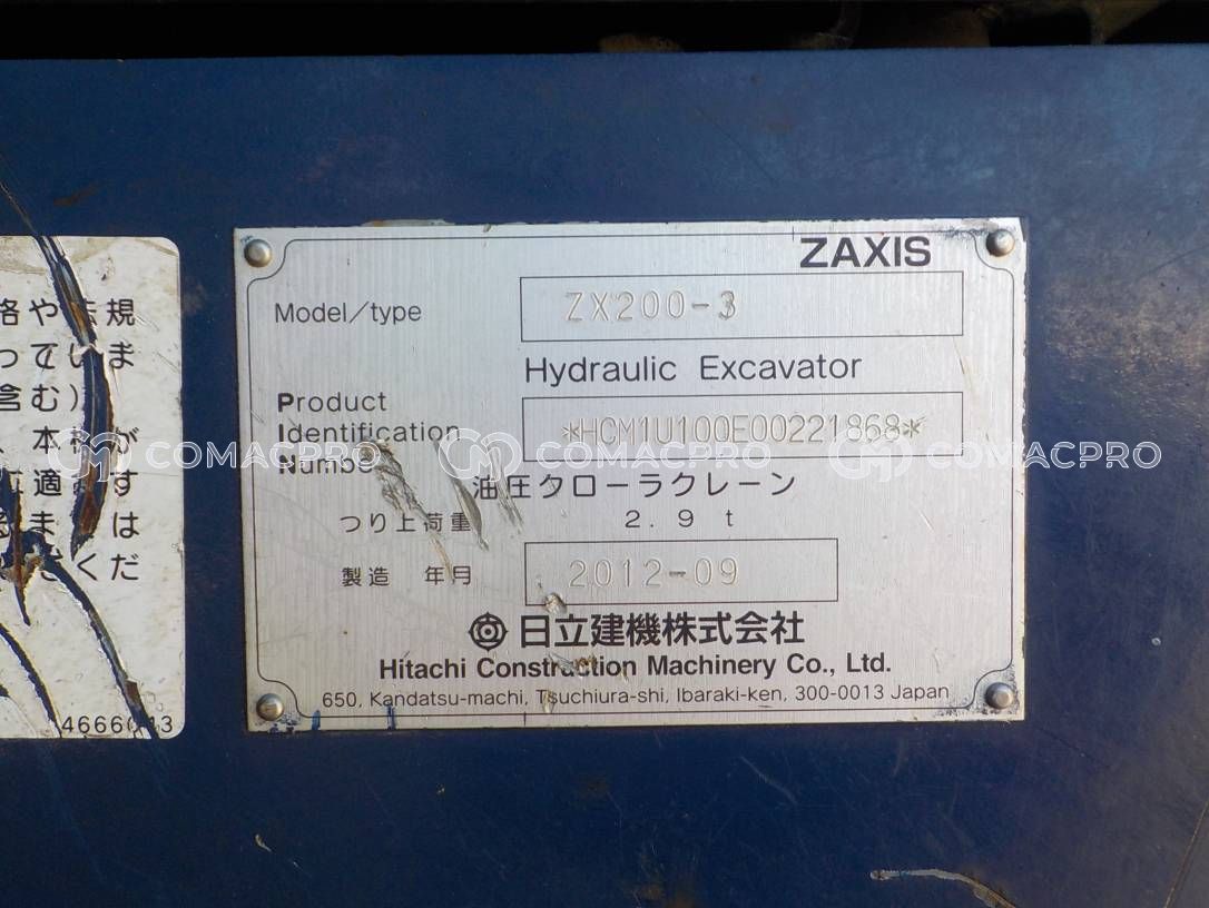 Crawler Excavator HITACHI ZX200-3 – 2012