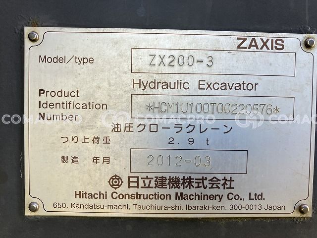 Crawler Excavator HITACHI ZX200-3 – 2012