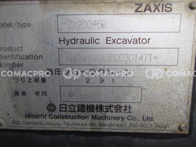Crawler Excavator HITACHI ZX200-5B – 2014