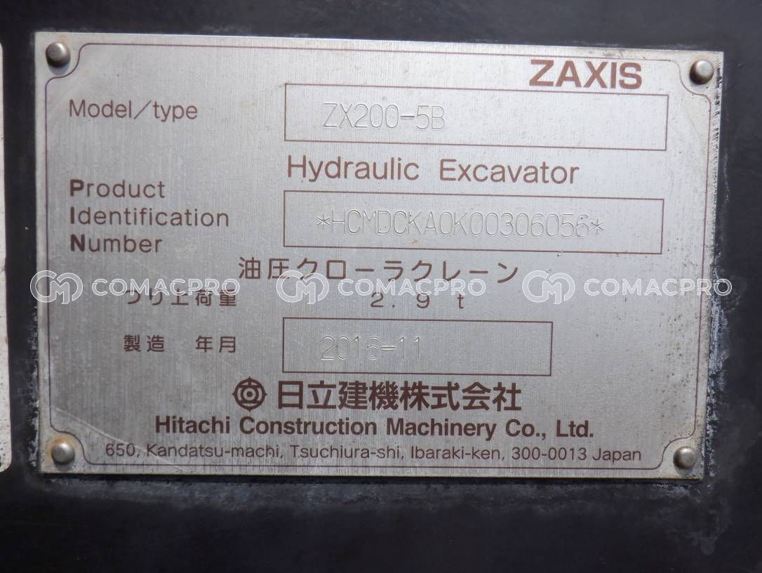 Crawler Excavator HITACHI ZX200-5B – 2016