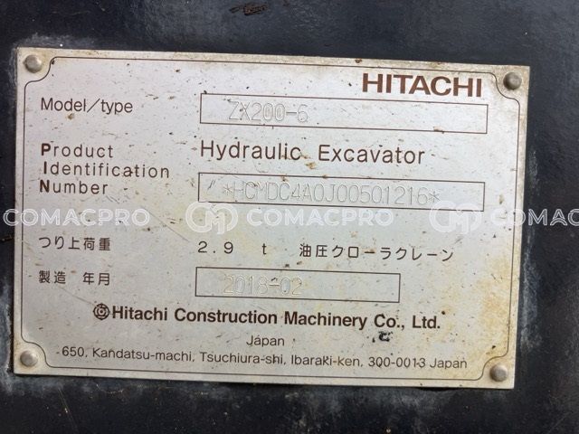 Crawler Excavator HITACHI ZX200-6 – 2018