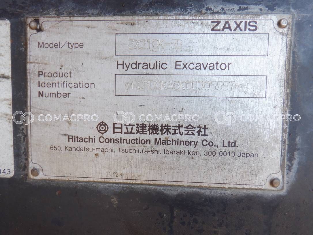 Crawler Excavator HITACHI ZX210K-5B – 2016