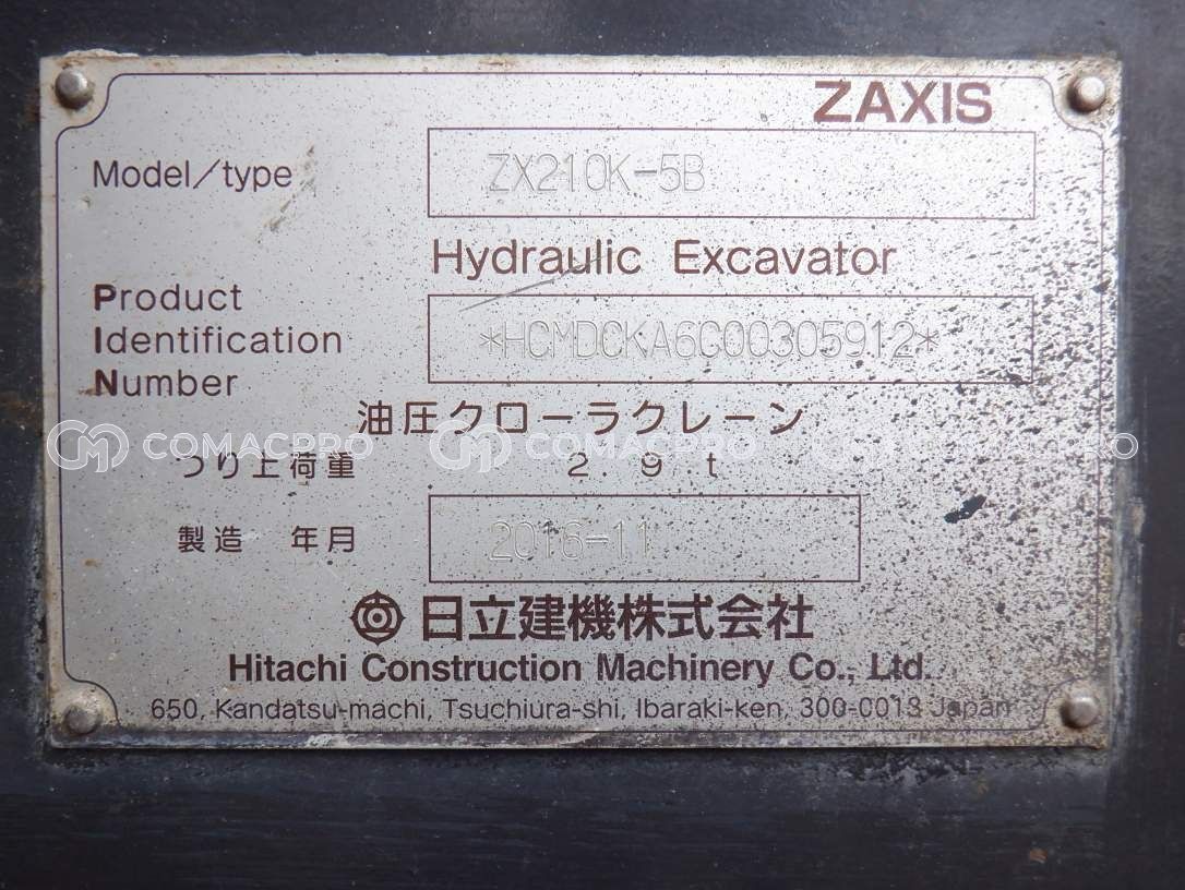 Crawler Excavator HITACHI ZX210K-5B – 2016