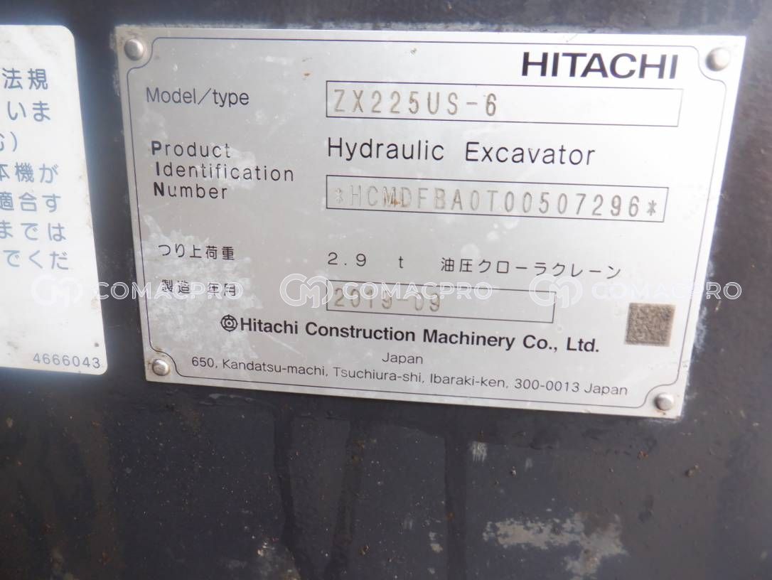 Crawler Excavator HITACHI ZX225US-6 – 2019