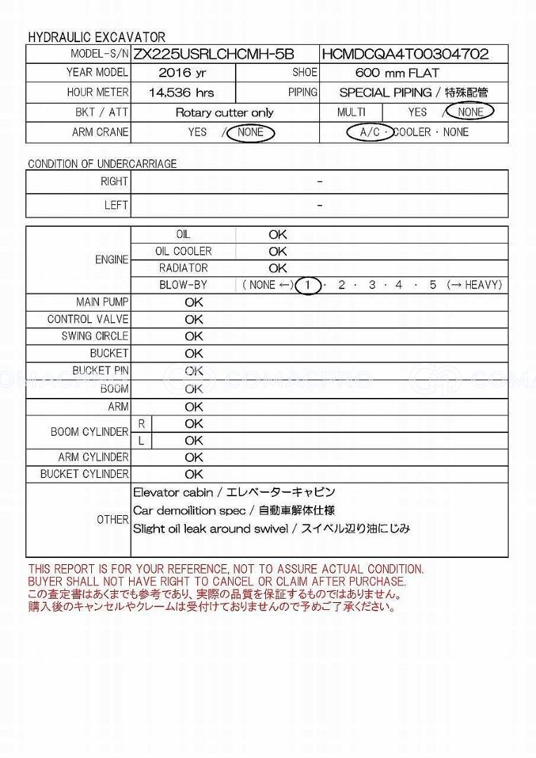 Crawler Excavator HITACHI ZX225USRLCMH-5B – 2016