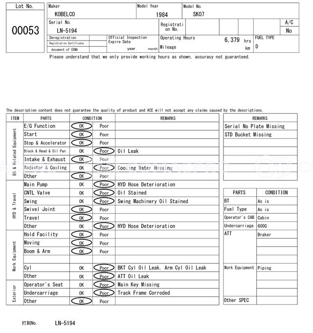 Crawler Excavator KOBELCO SK07 – 1984