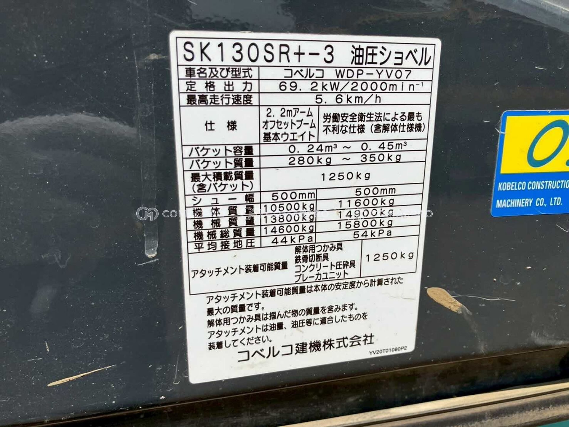 Crawler Excavator KOBELCO SK130SR+-3 – 2017