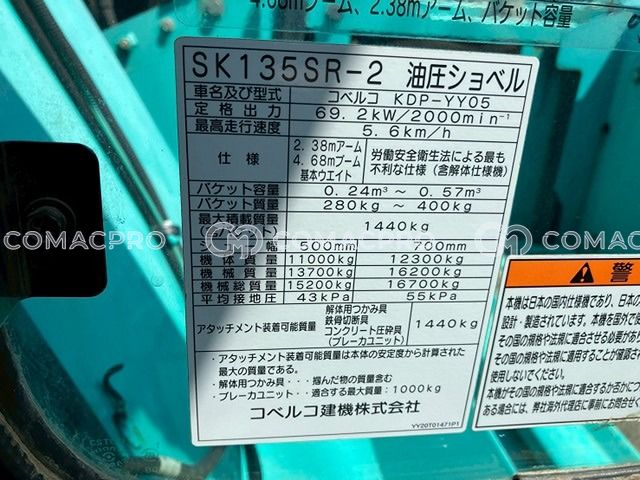 Crawler Excavator KOBELCO SK135SR-2 – 2013