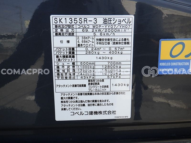 Crawler Excavator KOBELCO SK135SR-1E – 2002