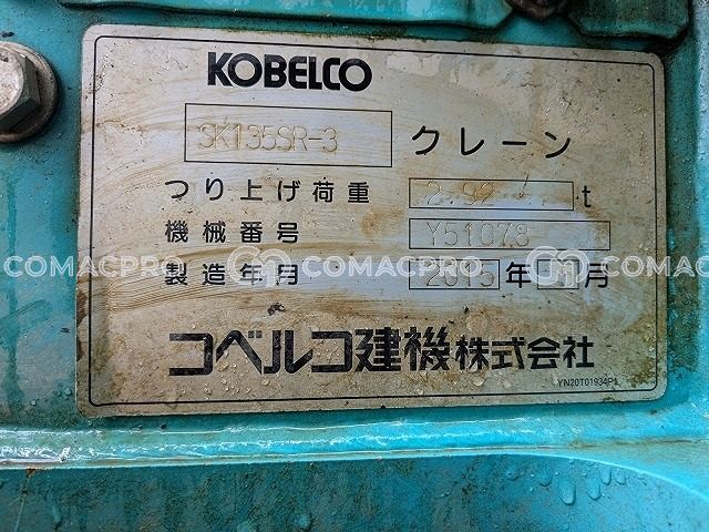 Crawler Excavator KOBELCO SK135SR-3 – 2015