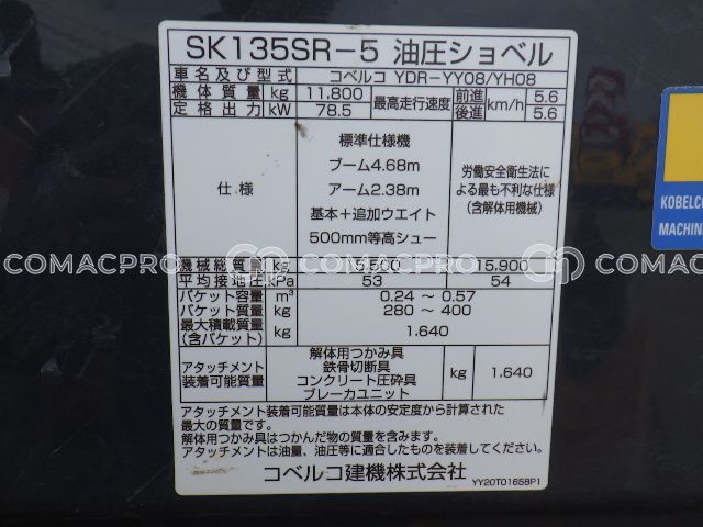 Crawler Excavator KOBELCO SK135SR-5 – 2020