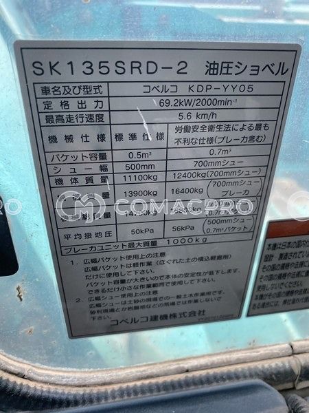 Crawler Excavator KOBELCO SK135SRD-2 – 2012