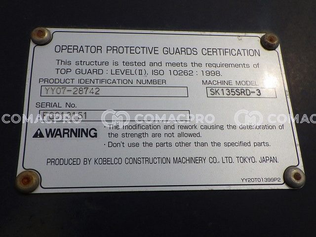 Crawler Excavator KOBELCO SK135SRD-3 – 2016