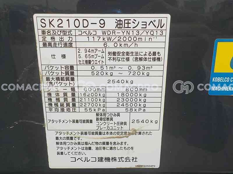 Crawler Excavator KOBELCO SK210D-9 – 2015