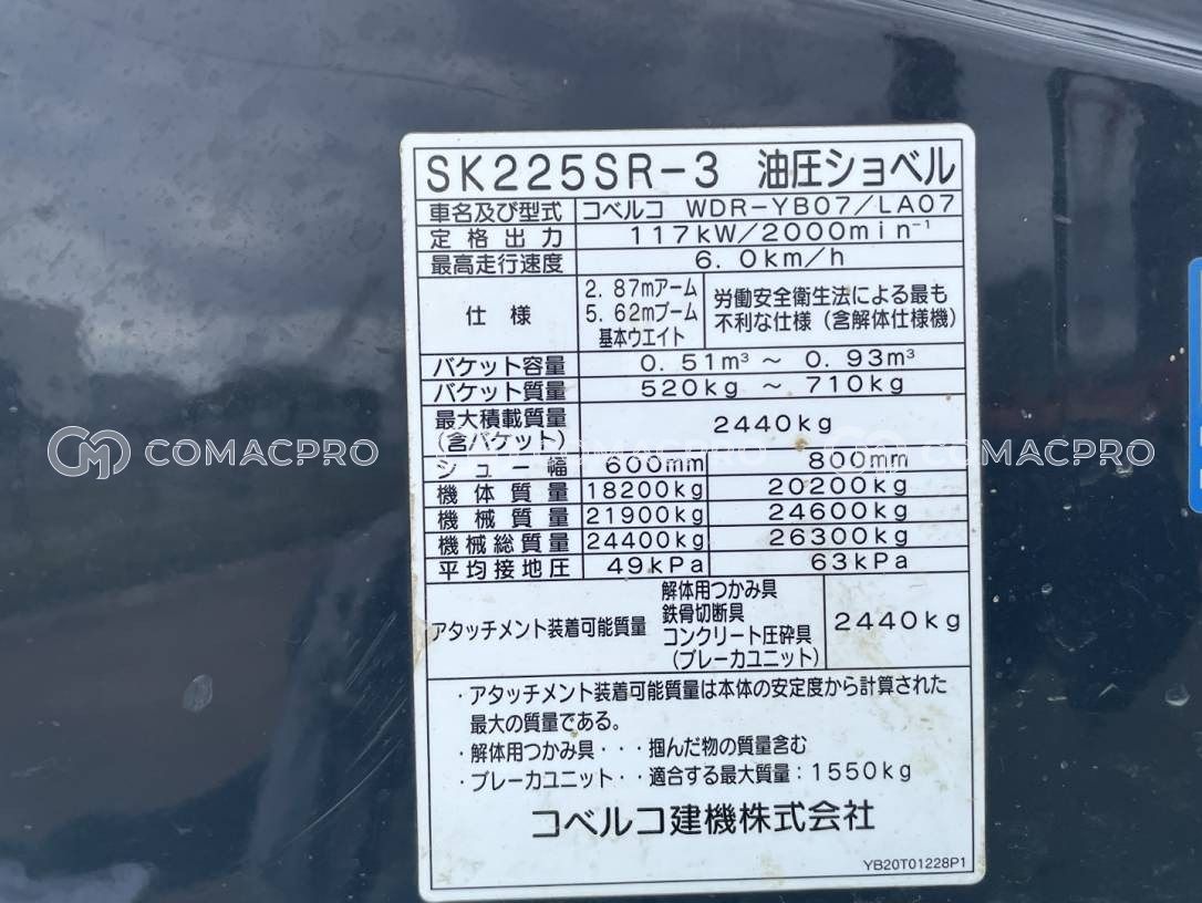 Crawler Excavator KOBELCO SK225SR-3 – 2014