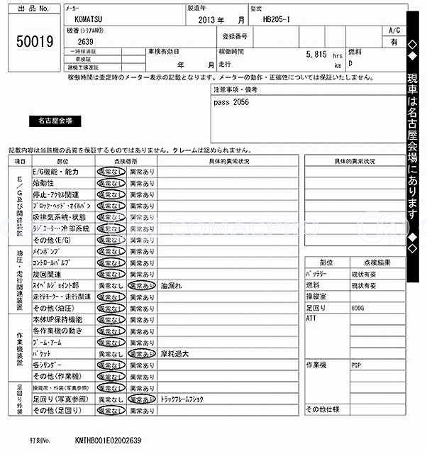 Crawler Excavator KOMATSU HB205 – 2013