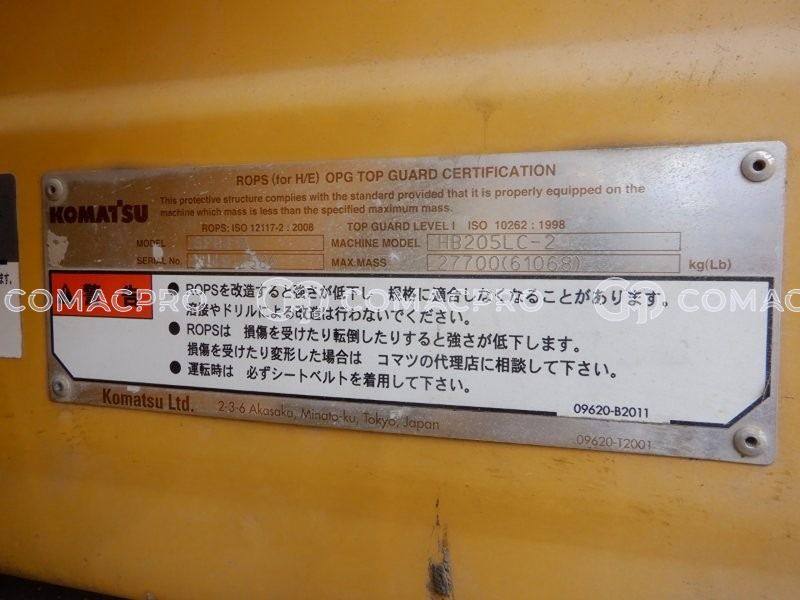 Crawler Excavator KOMATSU HB205LC-2 – 2014