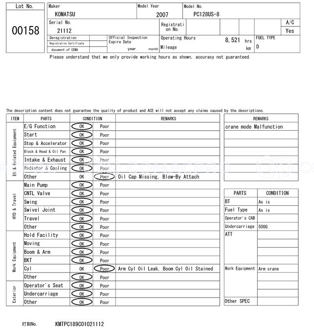 Crawler Excavator KOMATSU PC128US-8 – 2007