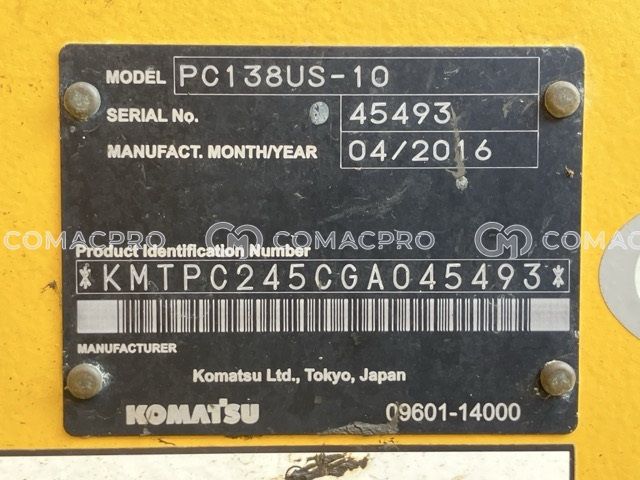 Crawler Excavator KOMATSU PC138US-10 – 2016