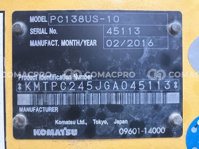 Crawler Excavator KOMATSU PC138US-10 – 2016