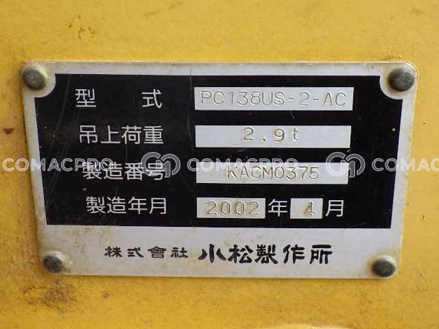 Crawler Excavator KOMATSU PC138US-2 – 2002