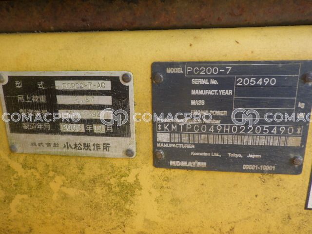 Crawler Excavator KOMATSU PC200-7 – 2003