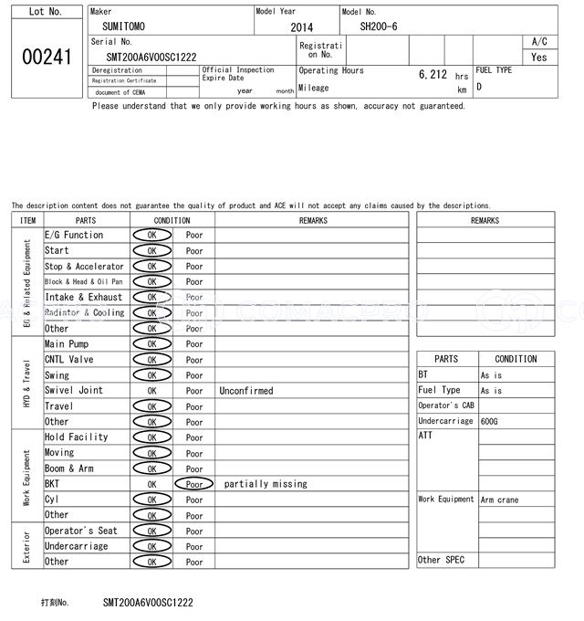 Crawler Excavator SUMITOMO SH200-6 – 2014