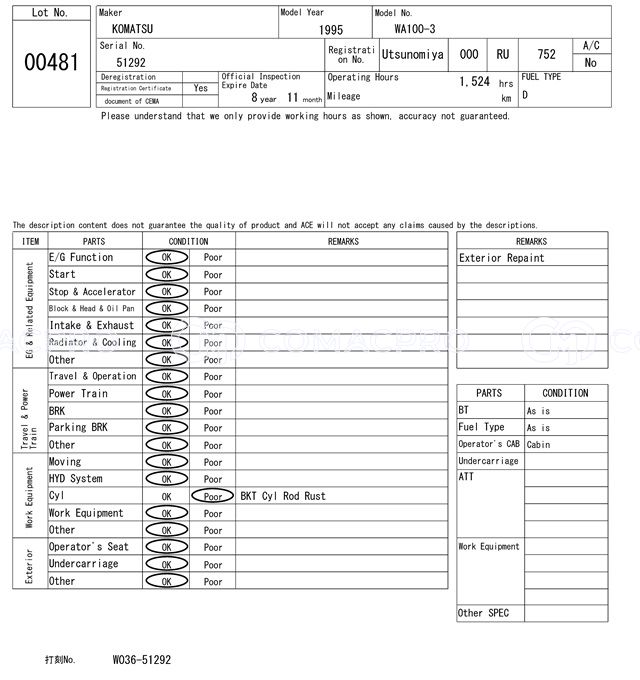 Wheel Loader KOMATSU WA100-3 – 1995