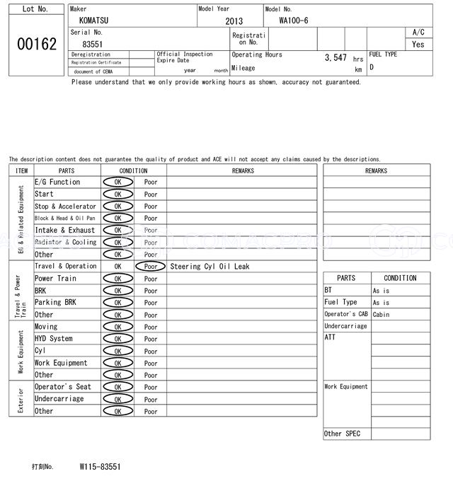 Wheel Loader KOMATSU WA100-6 – 2013