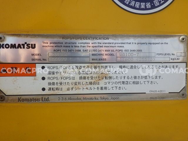 Wheel Loader KOMATSU WA100-7 – 2016