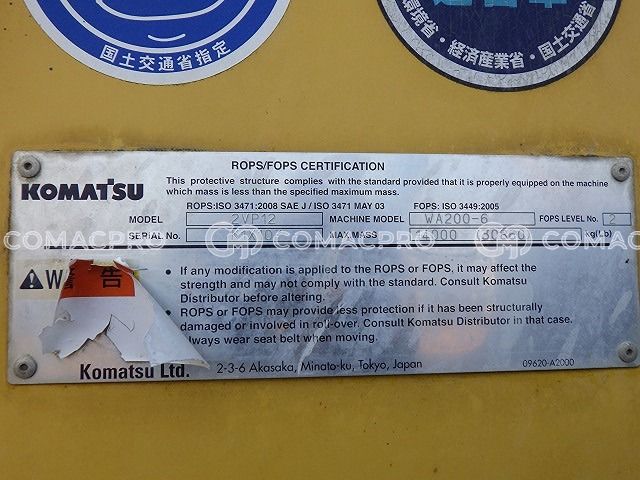 Wheel Loader KOMATSU WA200-6 – 2011